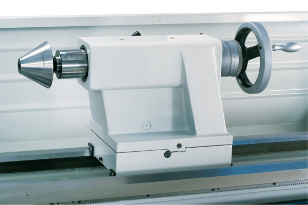 • Reitstock mit Feinskalierung kann zum Kegeldrehen verstellt werden Zentralschmierung für den Bettschlitten