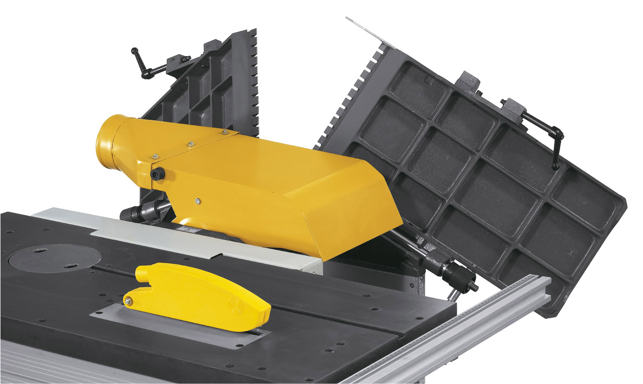 • Die Verstellung des Sägeaggregates erfolgt durch ergonomisch angebrachte Handräder