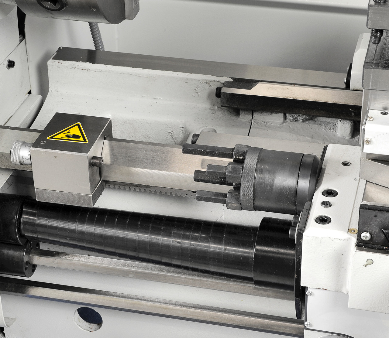 • Verschiebbarer Reitstock zum Kegeldrehen, Handrad mit einstellbarer Feinskalierung (0,02 mm)