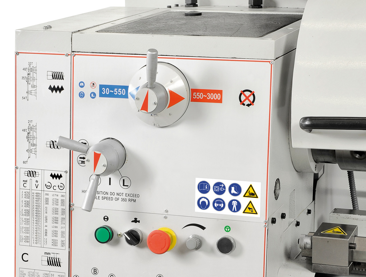 • Die Drehzahl- und Vorschubeinstellung ist einfach aufgebaut, leichtgängig und präzise schaltbar