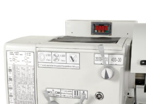 - Stufenlose Drehzahlregelung, die eingestellte Drehzahl wird über eine Digitalanzeige abgelesen