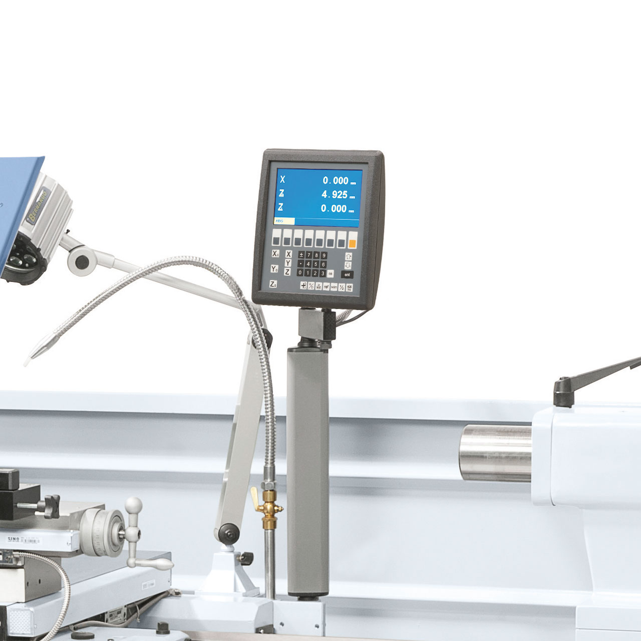 Die Produktionsdrehmaschine Titan 560 Vario ist eine moderne, dem heutigen Stand der Technik entsprechende Maschine. Schon die Grundausstattung beinhaltet alle wichtigen Zubehöre (3-Backenfutter, Lünetten, Wechselräder, 3-Achs-Positionsanzeige, Schnellwechselstahlhalter,?.) wodurch diese Maschine universell einsetzbar ist. Weiters ist dieses Modell mit einer stufenlos regelbaren Spindeldrehzahl bis 1500 U/min ausgestattet, dadurch kann die Drehzahl optimal an das Werkstück und die Vorschub-geschwindigkeit angepasst werden.