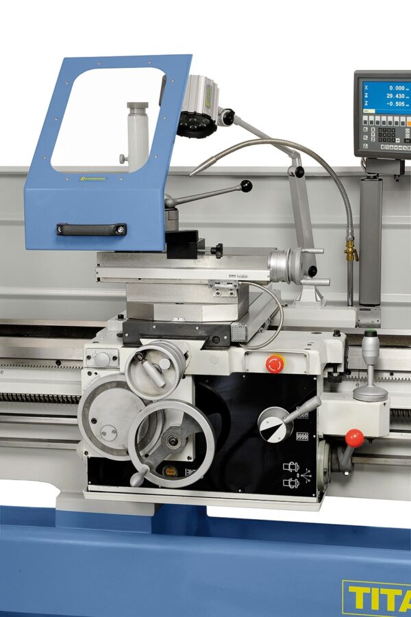Die Produktionsdrehmaschine Titan 660 Vario zeichnet sich durch hohe Genauigkeit und Leistung aus und ist besonders für mittlere bis schwere Zerspanungsarbeiten geeignet. Ihren Einsatzbereich findet dieses Modell beim wirtschaftlichen Herstellen von Einzelwerkstücken und Serien im Maschinenbau, Anlagenbau, Produktion, usw. Durch den serienmäßigen Frequenzumrichter ergeben sich wesentliche Vorteile, wie z.B. das hohe Drehmoment im unteren Drehzahlbereich und die annähernd konstante Schnittgeschwindigkeit unter Last.