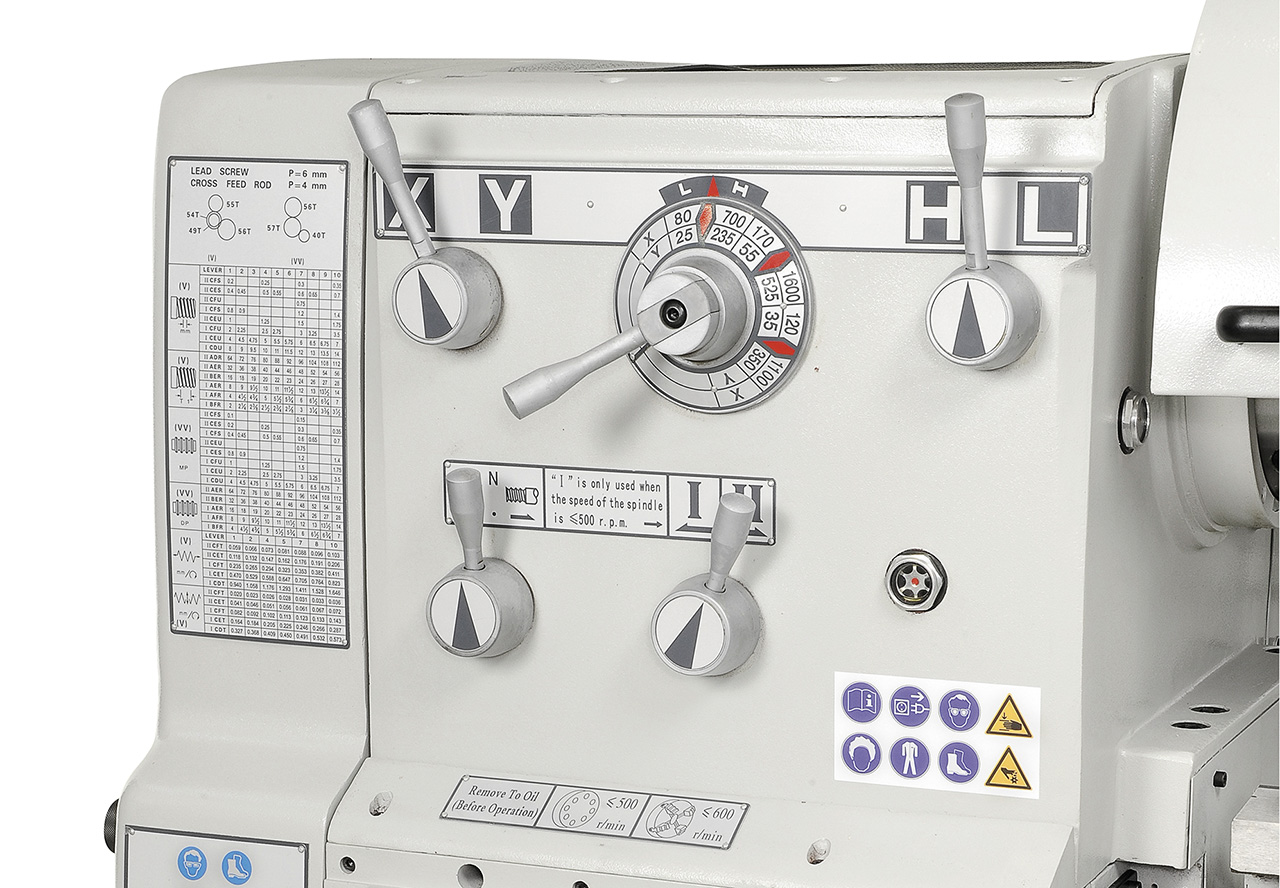 - Zentrale, handliche Schaltung für Vorschübe und Gewinde mit Leit- und Zugspindel