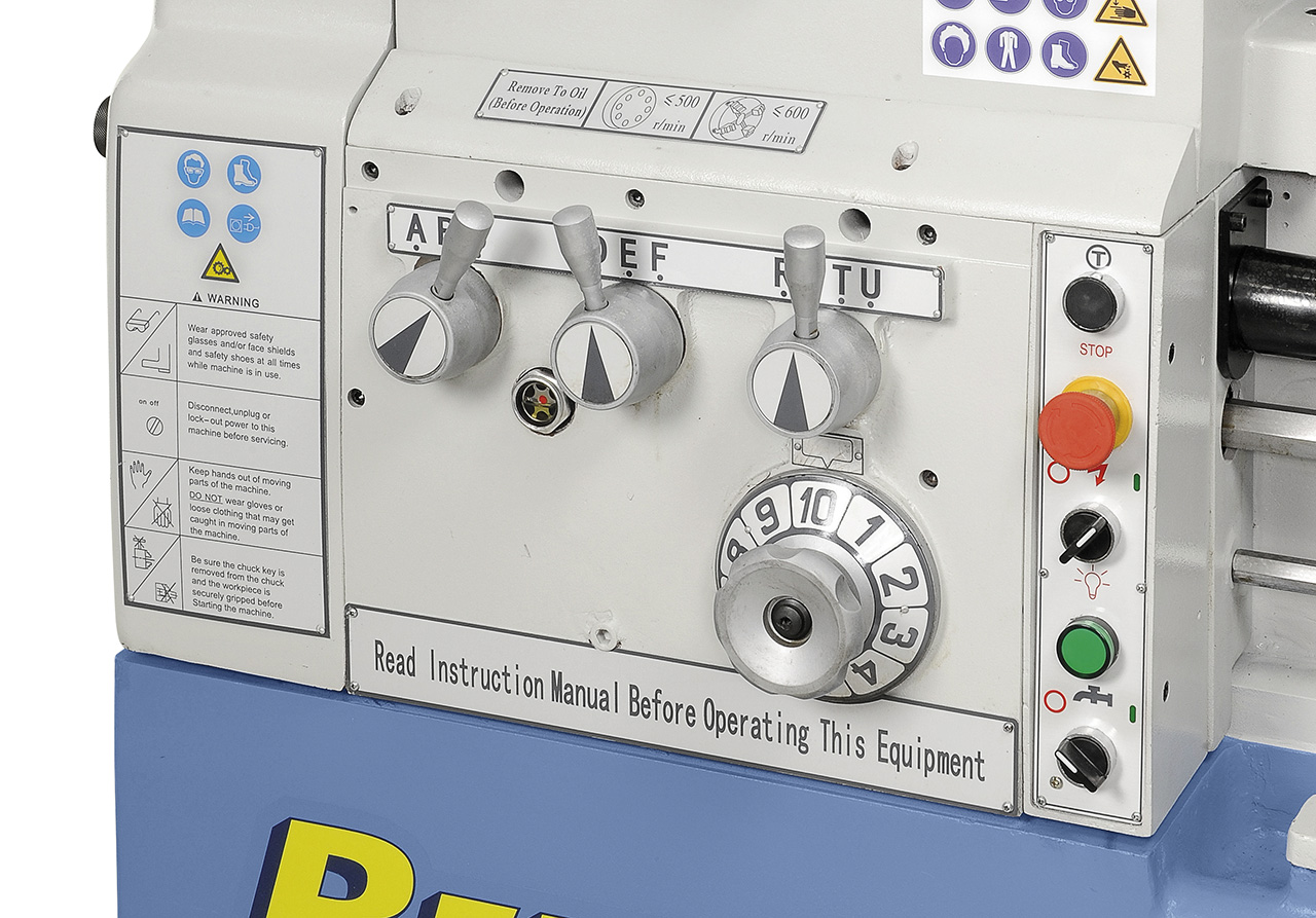 - Die Drehzahl- und Vorschubeinstellung ist einfach aufgebaut, leichtgängig und präzise schaltbar