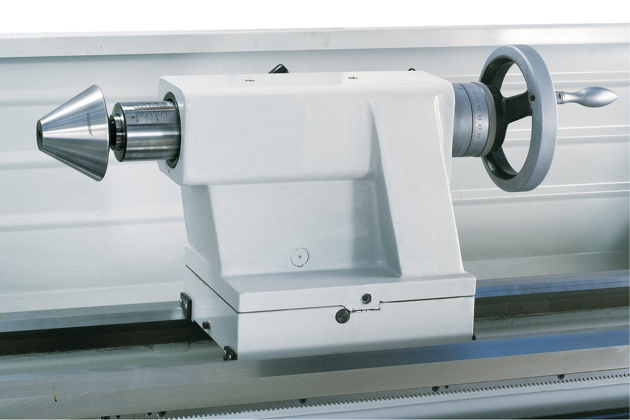 - Reitstock mit Feinskalierung kann zum Kegeldrehen verstellt werden