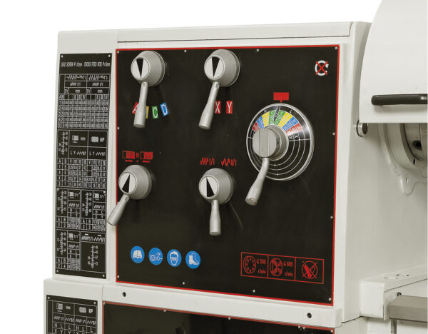 - Zentrale, handliche Schaltung für Vorschübe und Gewinde mit Leit- und Zugspindel