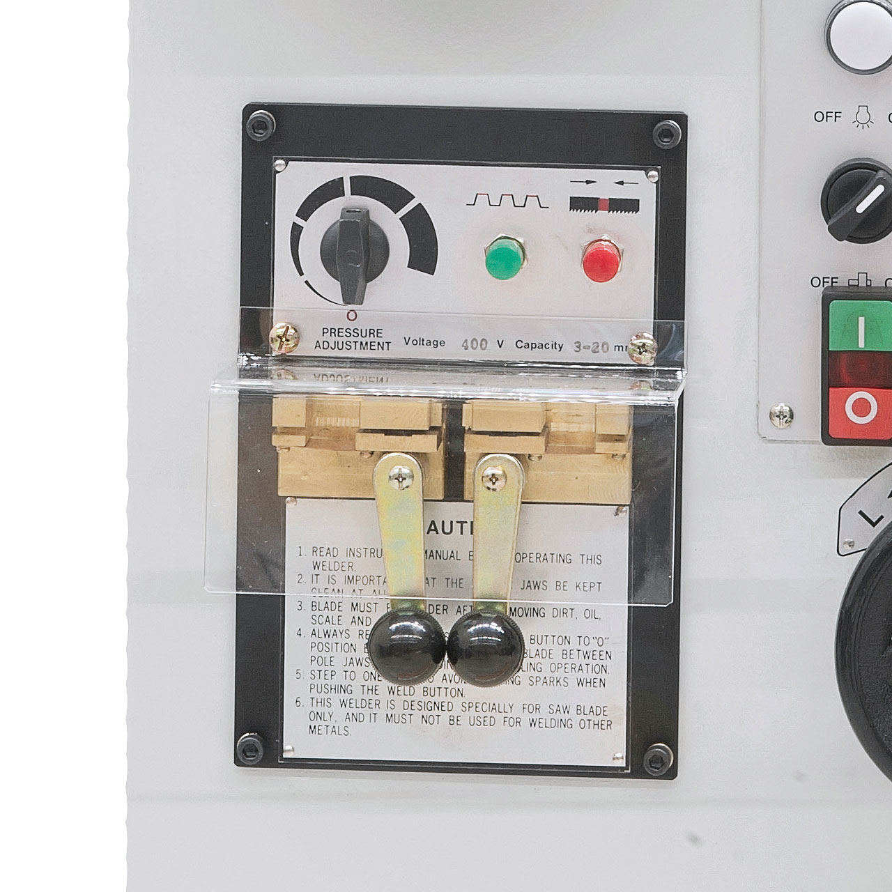 - Serienmäßig mit Bandschweißeinrichtung, Ausglühvorrichtung, Schere und Schleifstein