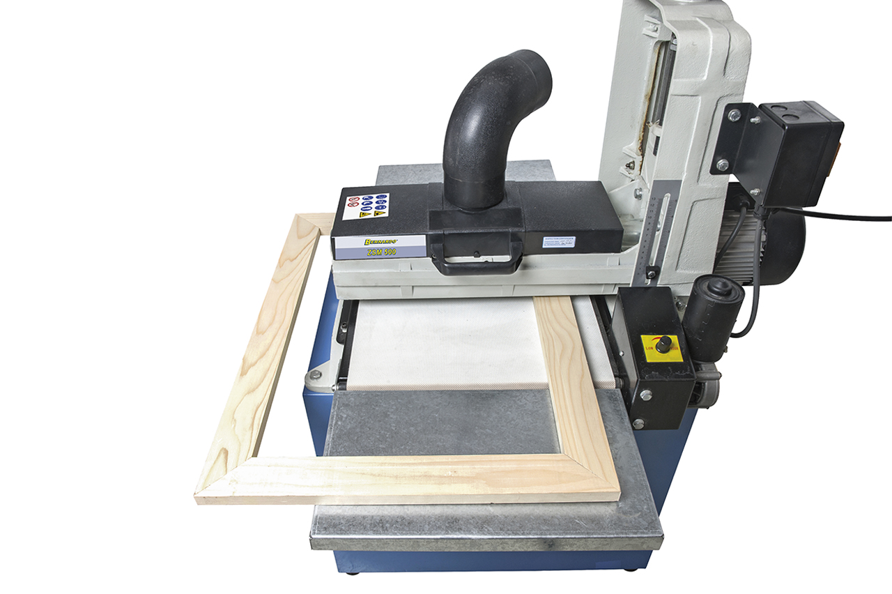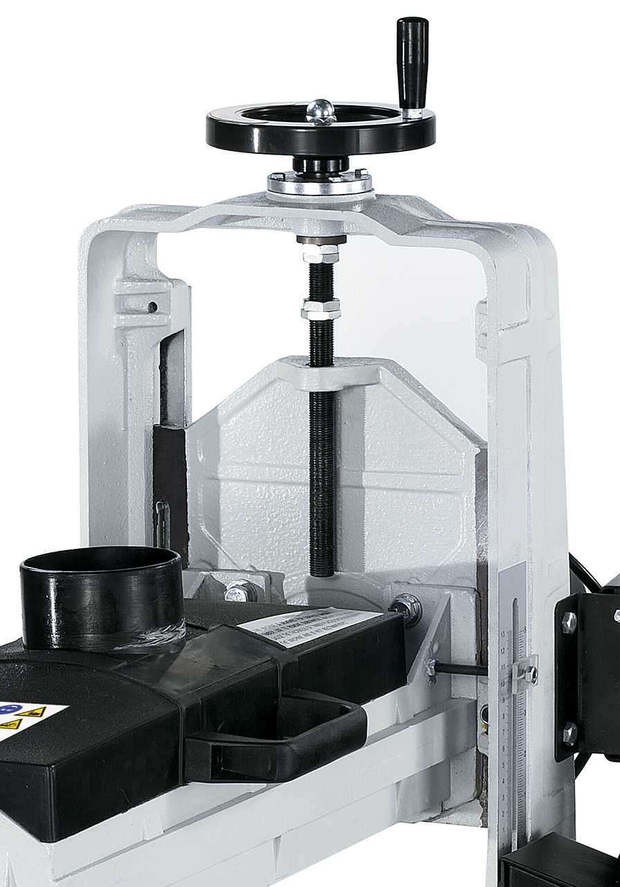 - Schleifeinheit wird mittels Handrad und Skala an die Werkstückdicke angepasst