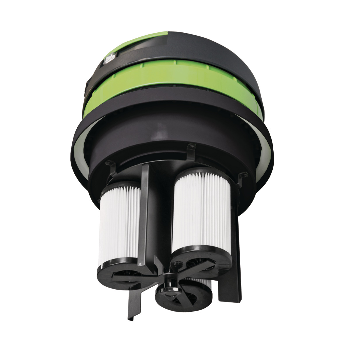 - Kartuschen-Filter mit extrem großer Filterfläche für gleichbleibende Saugleistung