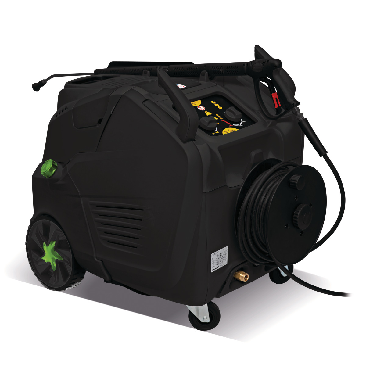 - Arbeitsdruck und Wassertemperatur zur Anpassung an die jeweilige Reinigungsaufgabe regulierbar