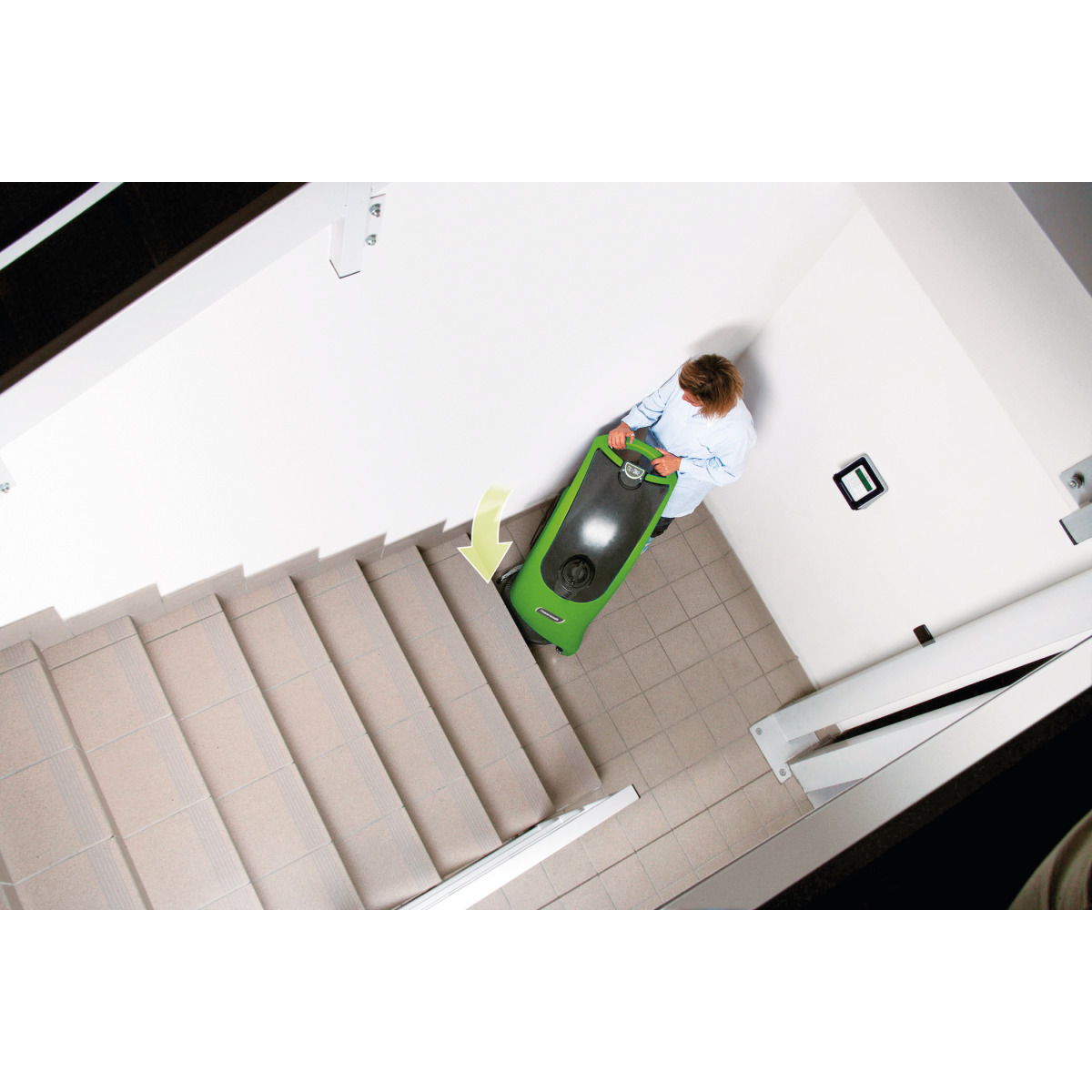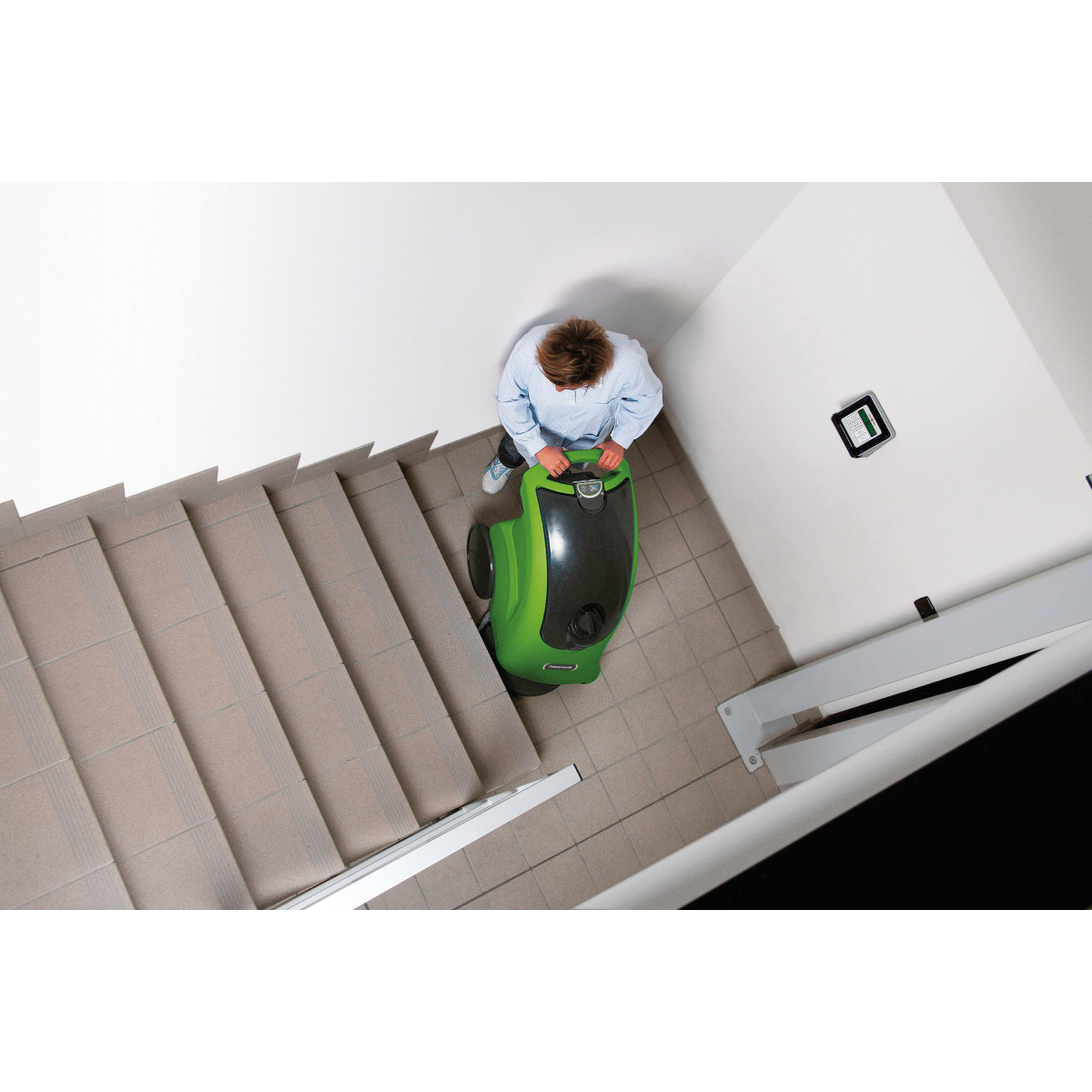 - Durch ihre kompakten Abmessungen kann sie sich um die eigene Achse drehen und ermöglicht so, Kurven in einem einzigen Durchgang zu reinigen