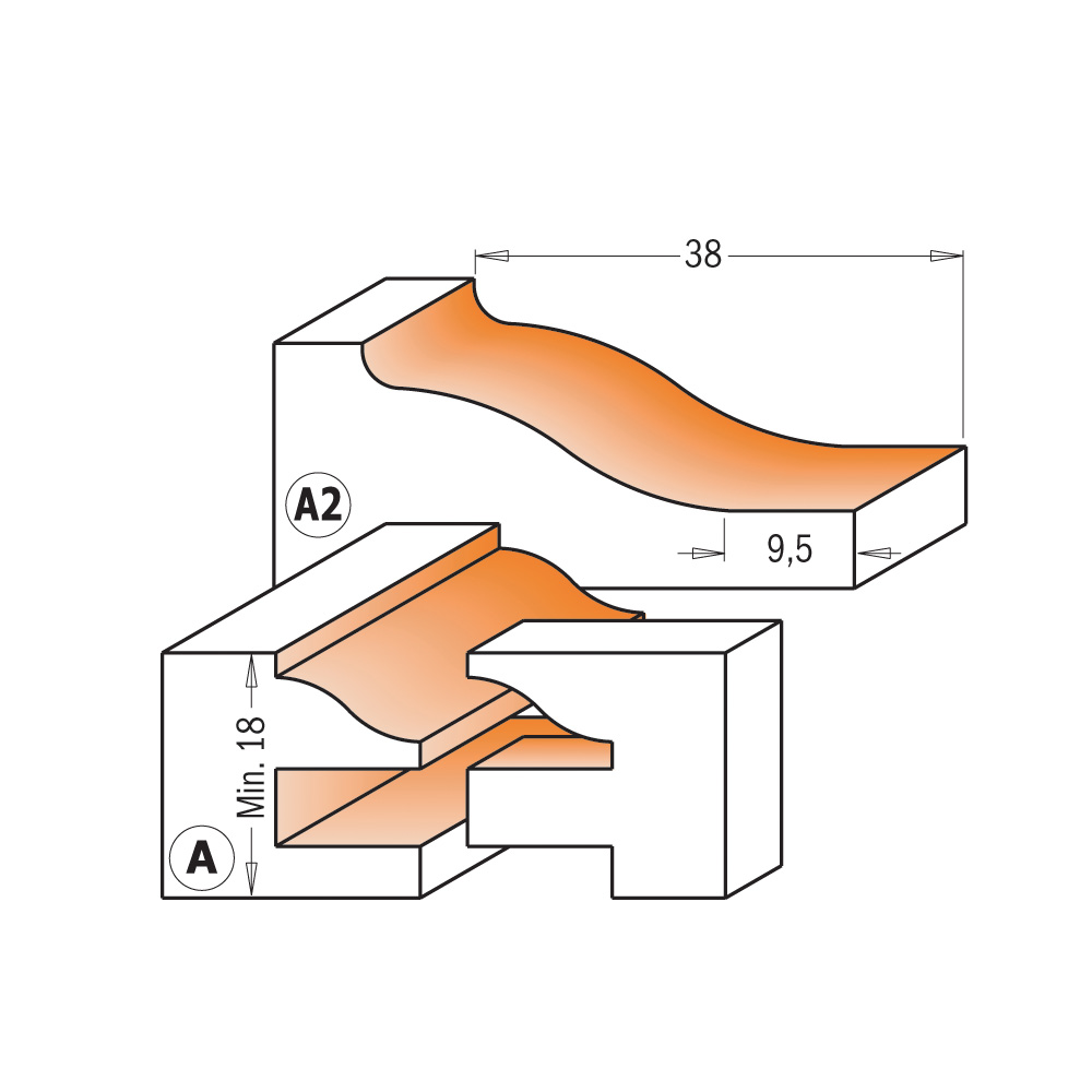 Produktname: CMT Orange Tools CMT 3-teilige Fräsersets für Küchen – profil A+A2 S=12 HW C90051311