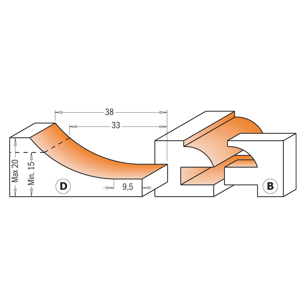 Produktname: CMT Orange Tools CMT 3-teilige Fräsersets für Küchen – profil D+B S=12 HW C90051611