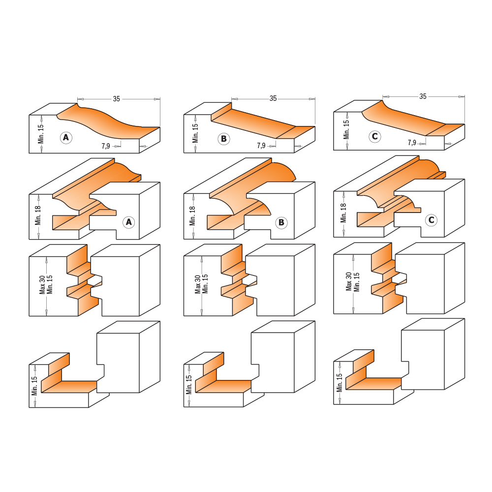 Produktname: CMT Orange Tools CMT 5-teilige Fräsersets für Küchen – profile A S=12 HW C90050911