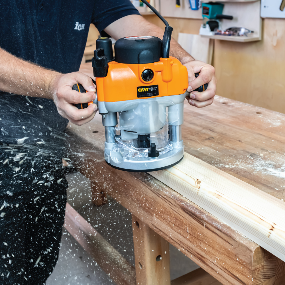 Die Oberfräse CMT7E mit 2400W Leistung bietet stufenlose elektronische Drehzahlregelung, einstellbare Frästiefe und fortschrittliche Sicherheitsfunktionen einschließlich NVR-System. Die ideale Wahl für anspruchsvolle Handwerker, die Zuverlässigkeit, Präzision und Komfort suchen.
