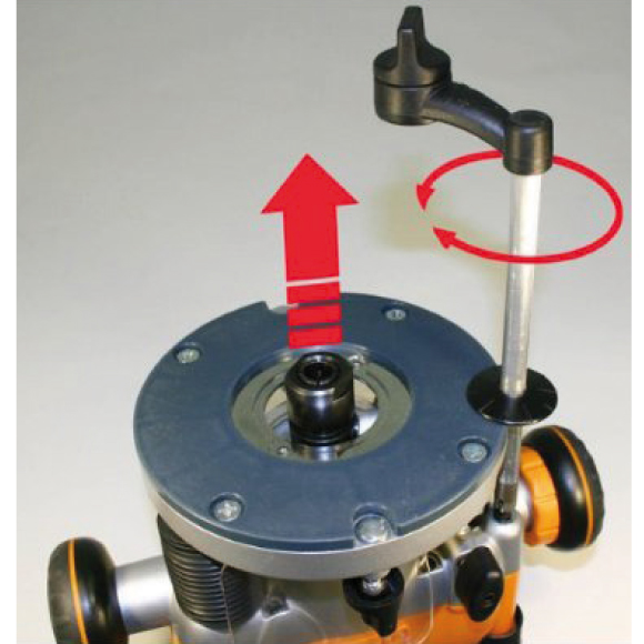 • Einfache Einstellung der Fräshöhe im Frästisch.