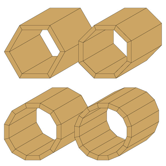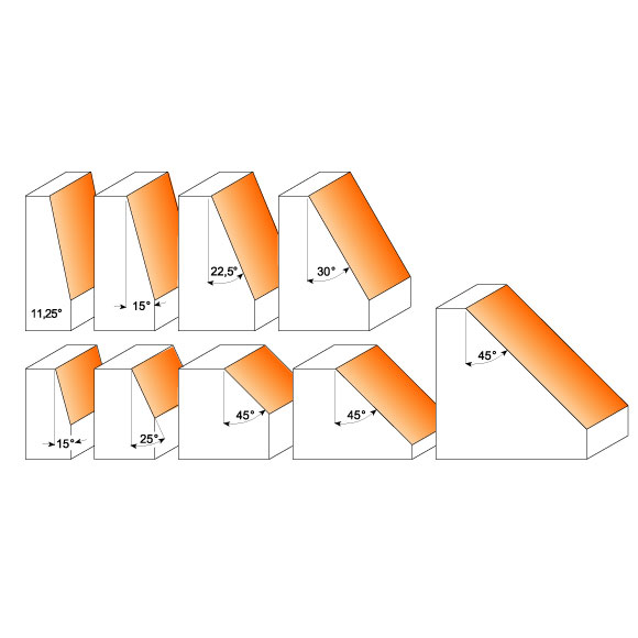 Eine abgeschrägte Kante sieht simpel aus, aber jeder Holz-Profi weiß, dass mehr dahinter steckt – beispielsweise, wenn Sie Polygone herstellen wollen, bei denen die Ecken exakt passen müssen. Mit unseren hartmetallbestückten Fasenfräsern haben wir das Problem gelöst: Durch simple Höhenverstellung des Werkzeuges können Sie von der Anfasung bis zur kompletten Abschrägung alles umsetzen. Somit lassen sich Pfeiler, Säulen, Vieleck-Boxen und vieles mehr herstellen.