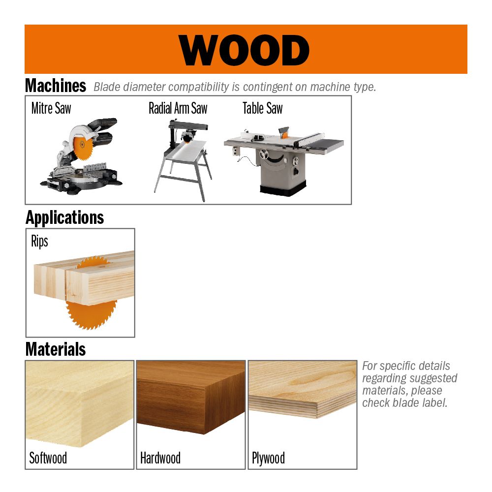 • Maschinen: Nach Durchmesser für Radial-, Form-, Gehrungs- und Tischkreissägen.