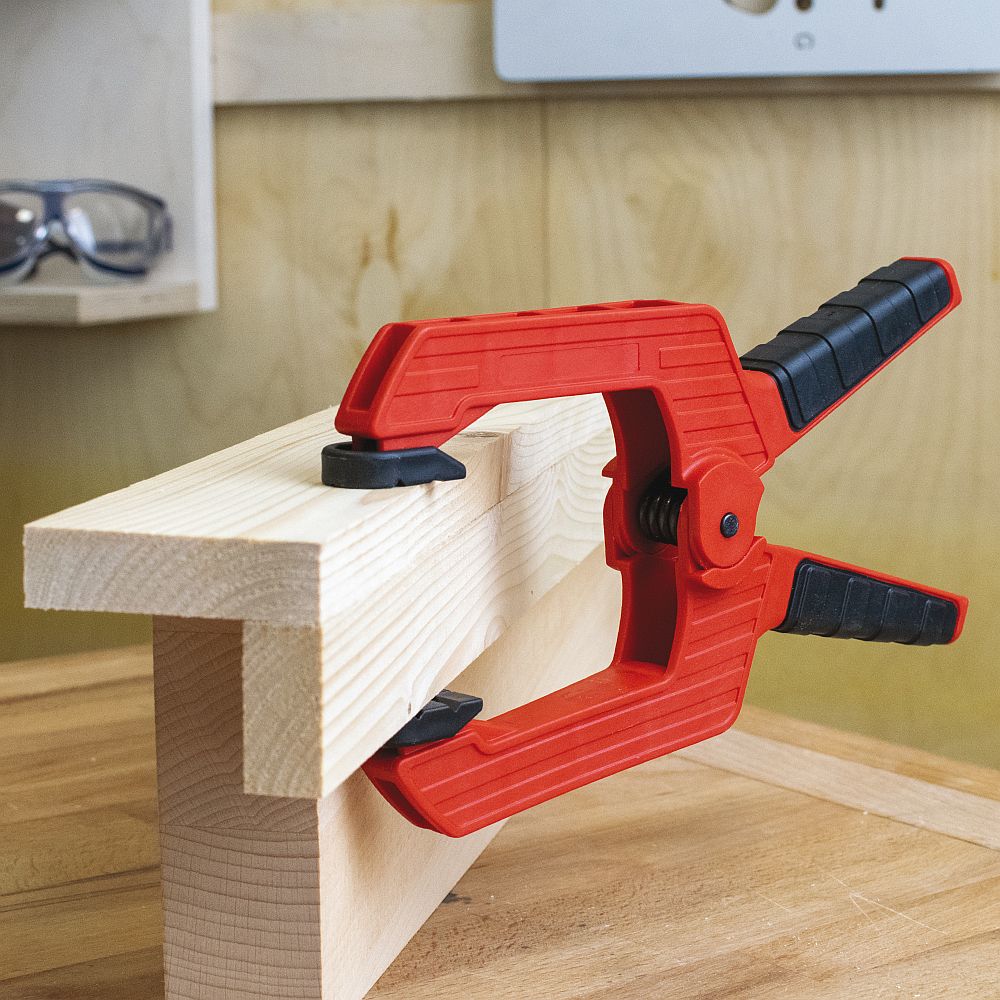 Federklemme mit starker, gehärteter Stahlfeder. Die Klemme ist mit schwenkbaren Backen im Bereich von 30° und einem gummierten Griff ausgestattet. Erhältlich in mehreren Größen. Die ideale Klemme für schnelle Montagearbeiten, Verkleben von Leisten, Reparieren von Musikinstrumenten oder für den Modellbauer.
