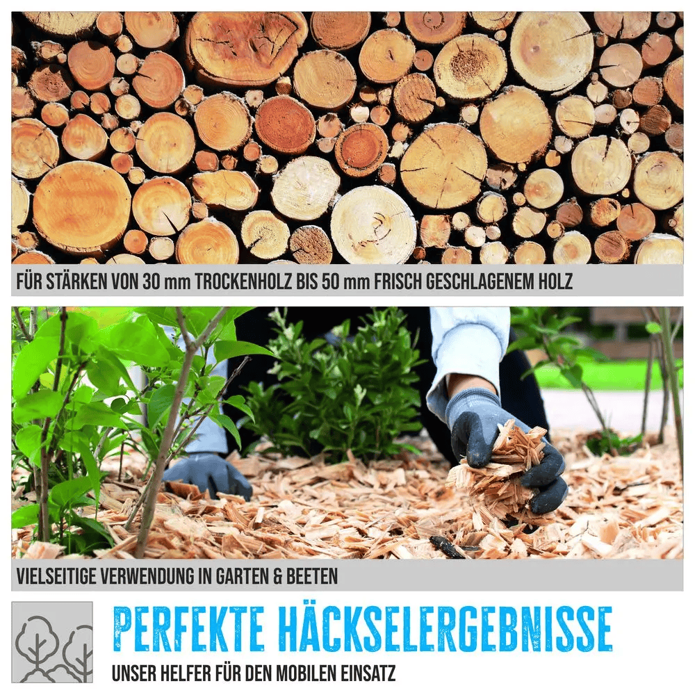 Ideal geeignet zum Zerkleinern von Ästen mit einem max. ∅50 mm (frisch geschlagen) und ∅30 mm (trockenen).