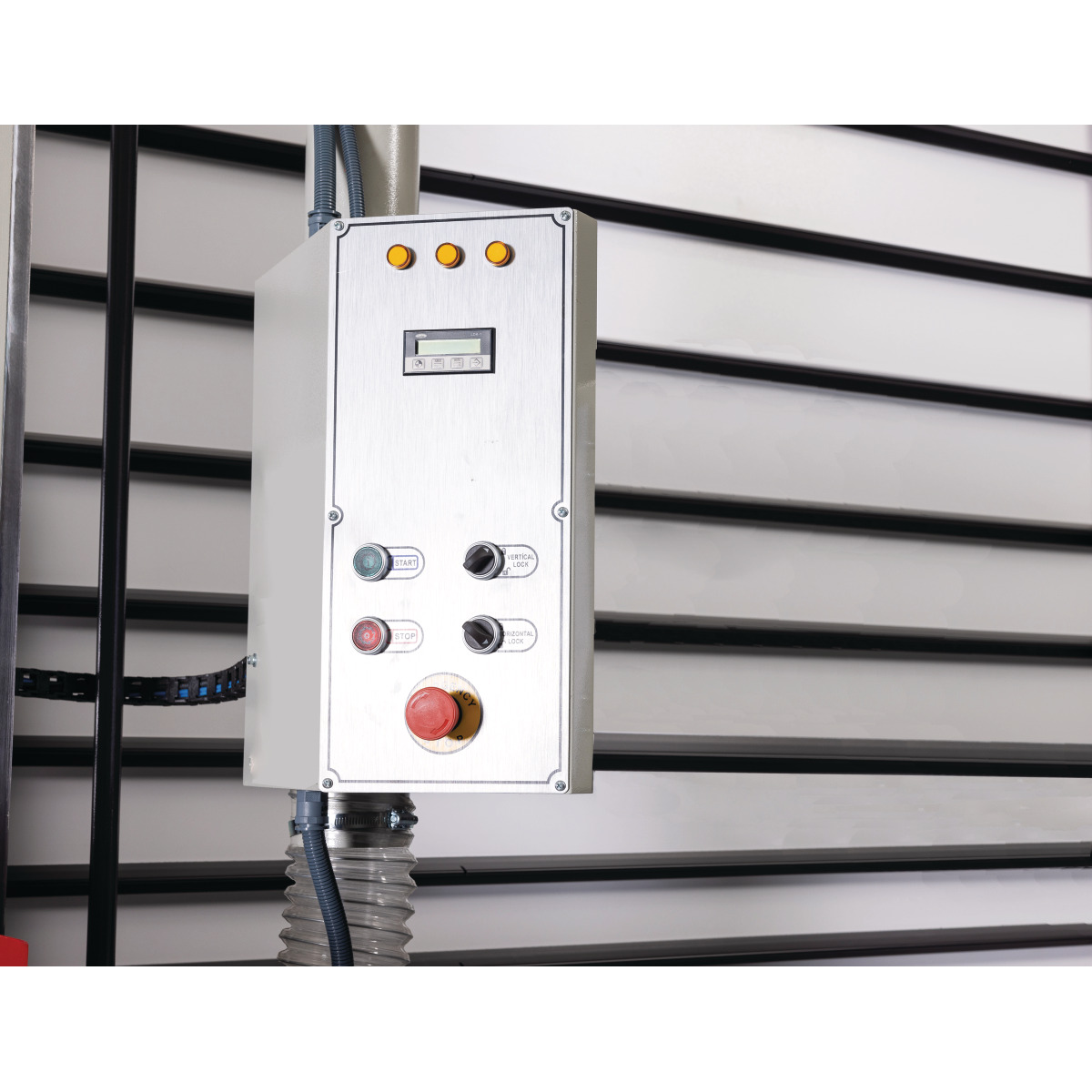 - Pneumatische Arretierung des Sägewagens