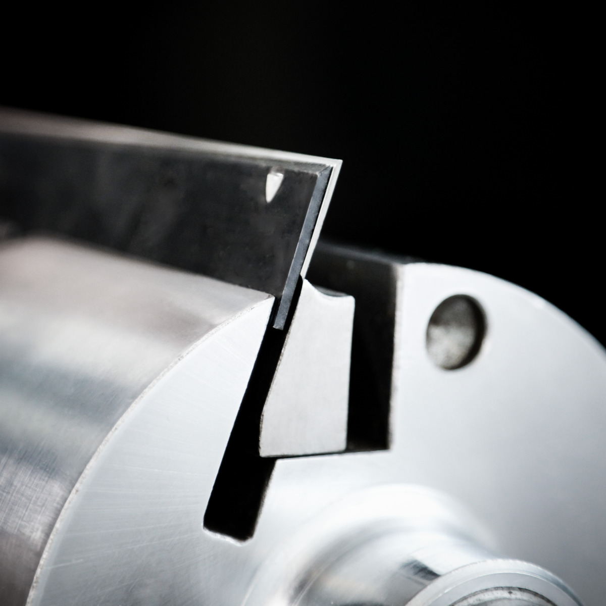 - Eine kleine Halterung am Messerträger fixiert künftig stets sowohl den Träger wie auch das Hobelmesser auf dem korrekten Messerflugkreis