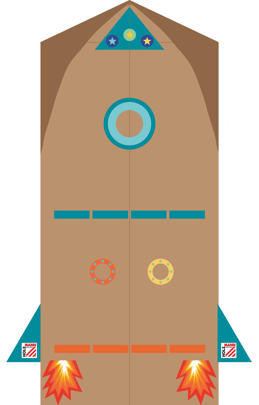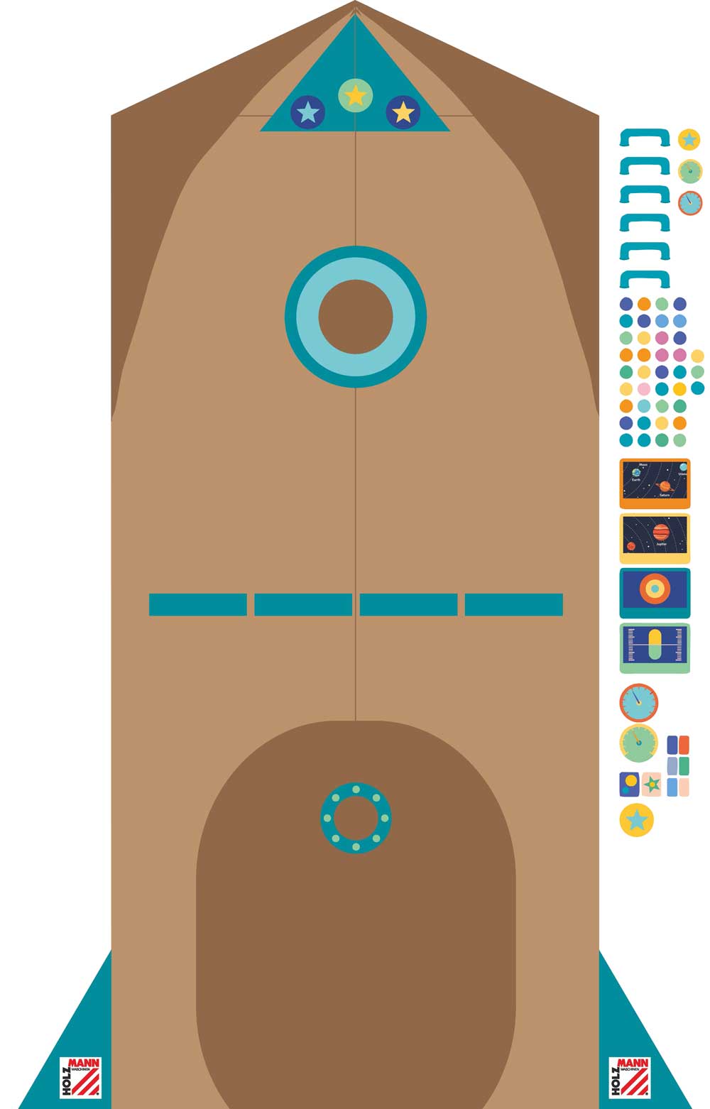 Lieferumfang: 4 Stickerbögen + Anleitung zum Bau einer Spielzeugrakete aus dem Verpackungskarton