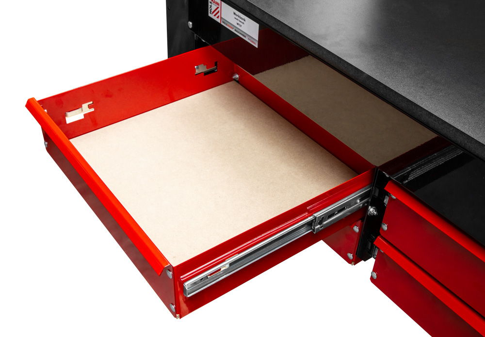 • große MDF Arbeitsplatte, auf einem stabilen Blechgestell