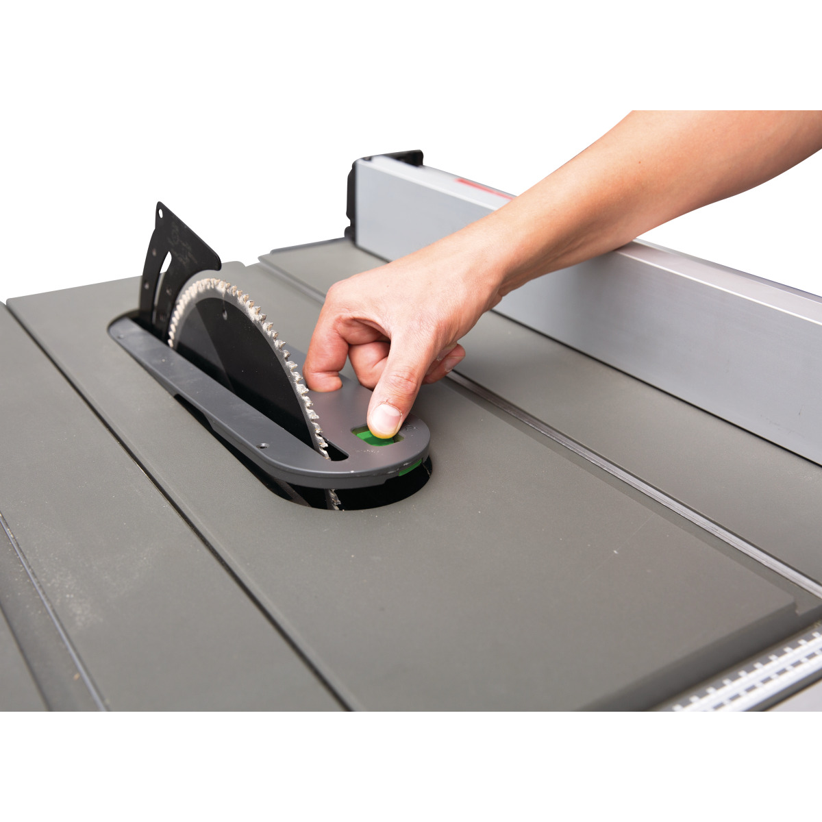 - Werkzeugloser Wechsel der Sägeblattschutzhaube und der Tischeinlage