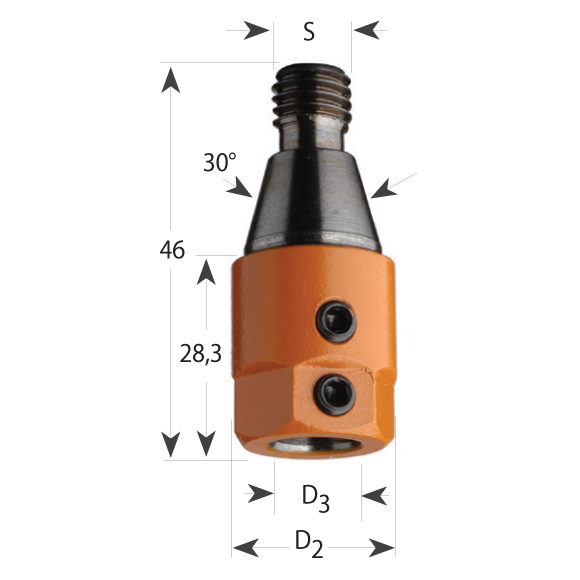 Produktname: IGM Adapter 303 mit konischer 30° Fläche, M10 – für Bohrer S8, D16x28,3×46 M10 L F303-08002