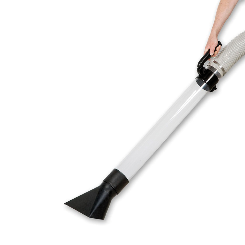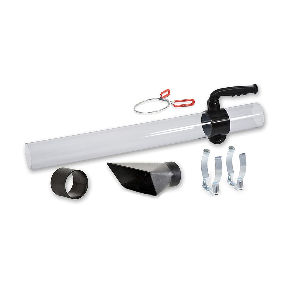 Absauganlage zu arbeiten. Befreien Sie sich mit diesem praktischen Stutzen von Staub und Holzspänen in Ihrer Werkstatt. Befestigen Sie ihn einfach an einen 100mm Schlauch, der an eine Absauganlage angeschlossen ist, und räumen Sie Ihre Werkstatt auf! Bequemer Griff sorgt für eine einfache Handhabung. Wird mit 2 Wandhalterungen zur einfachen Aufbewahrung und einer Schlauchklemme geliefert. Wir empfehlen die Verwendung mindestens einer 1000 m3/h Absauganlage für die effizienteste Absaugleistung. Das gesamte Set enthält einen Saugschlauch, einen Griff, ein Verbindungsstück, eine Schlauchschelle und Wandhalterungen.