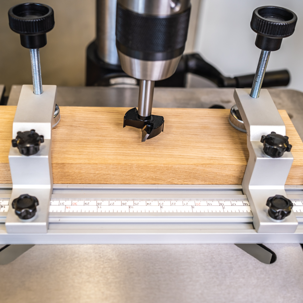 Der Set mit 2 Druckklemmen ist für die Befestigung an eine Klemmschiene vorgesehen. Rüsten Sie Ihre Bohrmaschine auf und befestigen Sie die Schiene einfach mit ein Paar Oberdruckklemmen auf den Bohrtisch, um das Werkstoff leicht und fest einzuspannen. Maximale Einspannstärke 36 mm. Hergestellt aus extrudiertem Aluminium. Die Druckklemmen haben Kunststoffsitzflächen, um das Verkratzen des Materials zu verhindern.