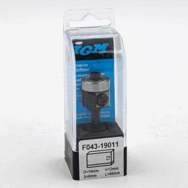 Produktname: IGM F043 Wendeplatten-Bündigfräser mit Kugellager – D19x12 L56 S=6 HW F043-19011