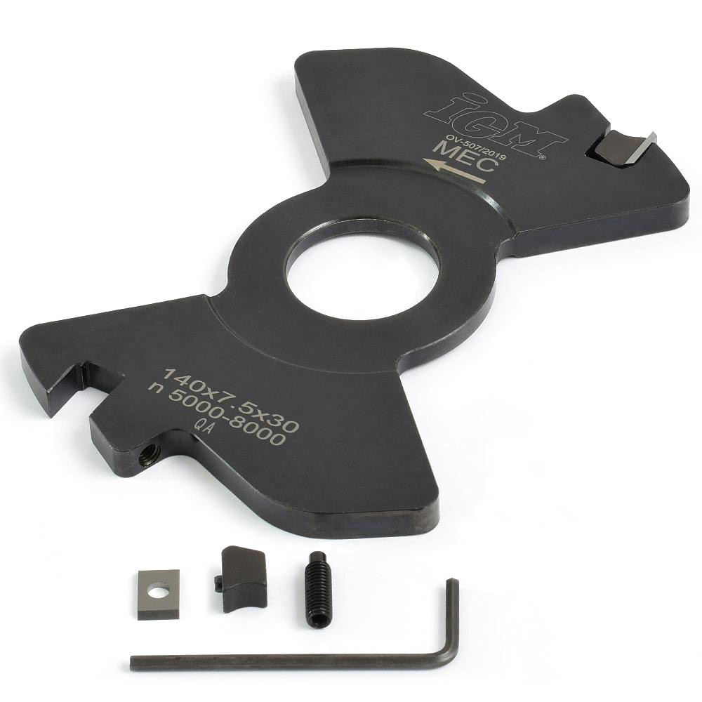 Der Zwischennnuter wird eingesetzt, um die Nutbreite der IGM Verstellnuter Typ F602 zu erhöhen. Er erweitert die Möglichkeit der Einstellung der Nutbreite um die Breite B. Der Zwischenfräser wird zwischen die beiden Teile des Verstellnuters eingesetzt. Aufnahme d=30mm.