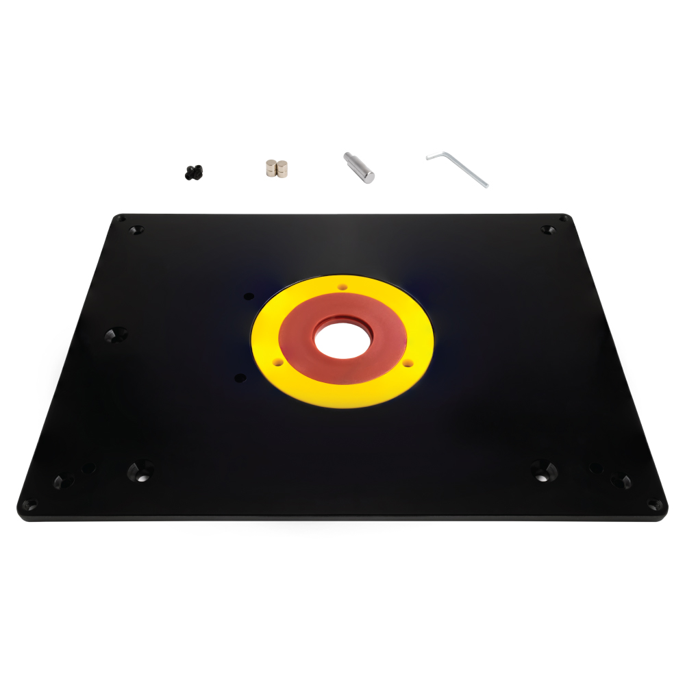 Diese Frästisch-Zentriereinlegeplatte bietet eine solide und stabile Fläche zur Befestigung Ihrer Oberfräse auf Ihren maßgefertigten Frästisch oder Arbeitstischplatte, Werkbank oder Hobelbank.