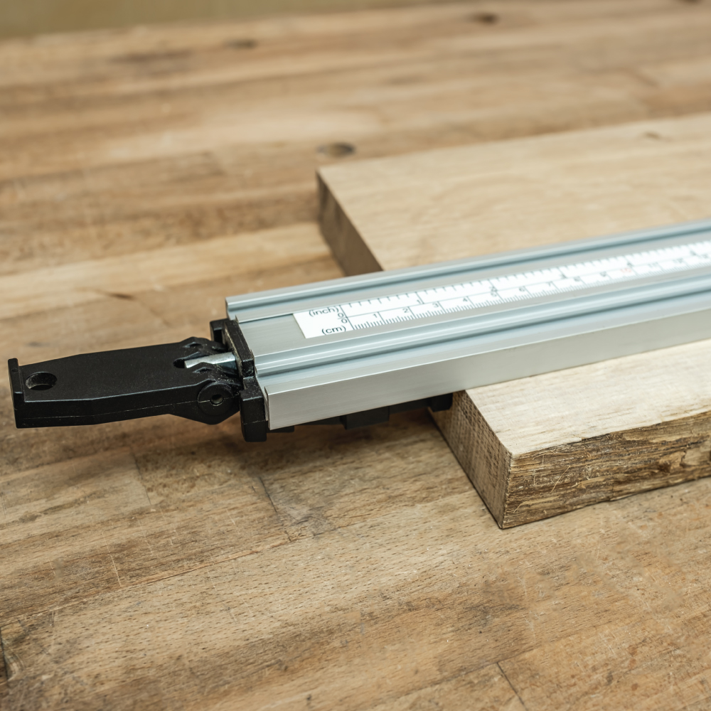 Universelle Führungsschiene mit 1270 mm Länge, Schnellspannsystem und T-Verbindern. Für alle Arten von Tischlereimaschinen und zum Anreißen geeignet.