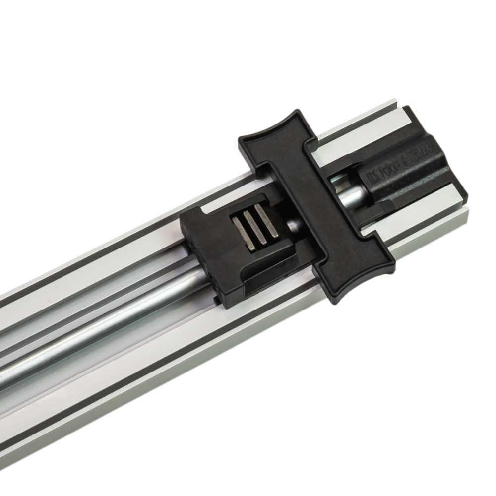 Die Schiene ist aus einem niedrigen Duraluminium-Profil gefertigt, das Festigkeit, Beständigkeit und Präzision gewährleistet. Optionales Zubehör verfügbar: wie z. B. ein Set Verbindungsstücke, mit denen Sie zwei Schienen miteinander verbinden können, um ihre Verwendung als Schnellspannvorrichtung zu erweitern.