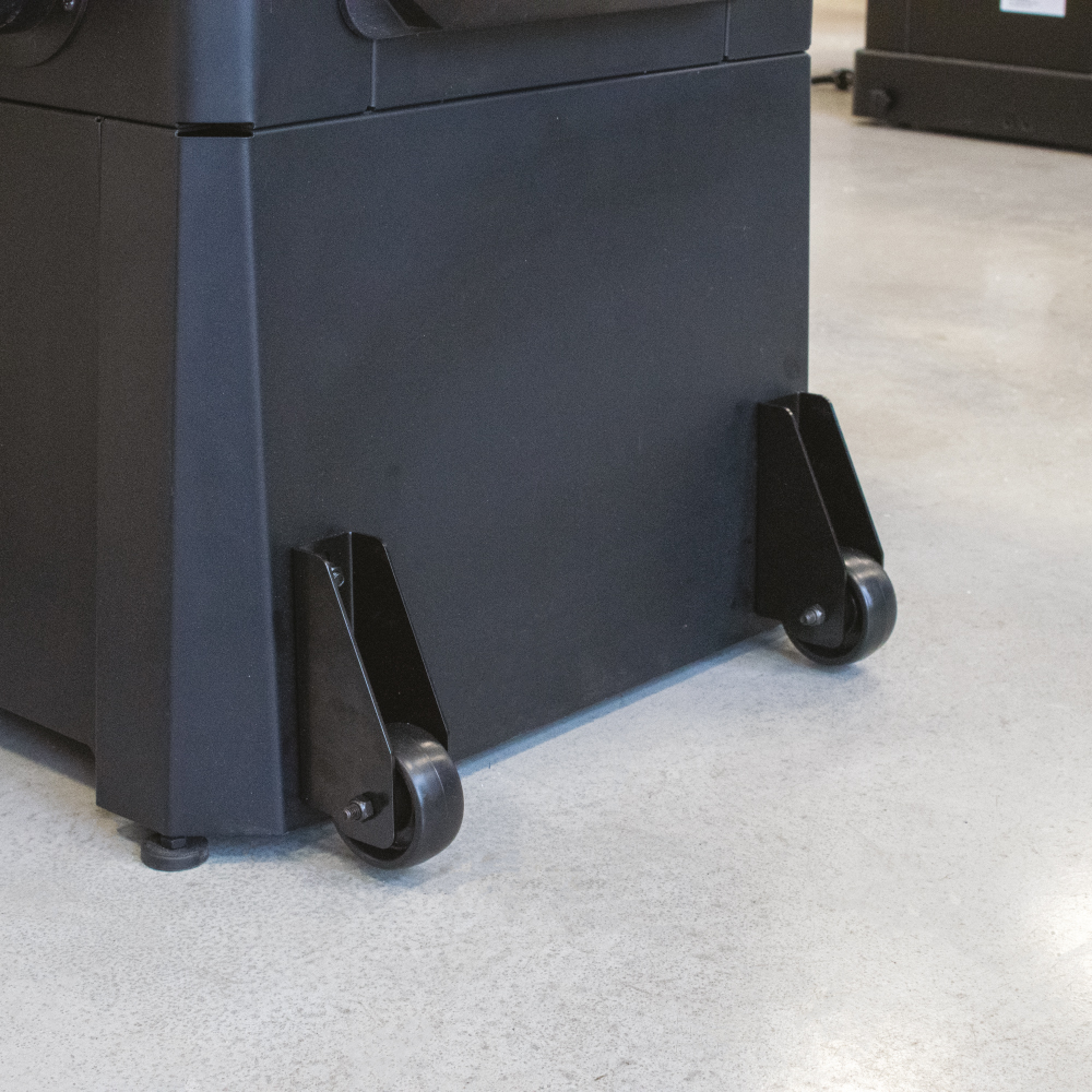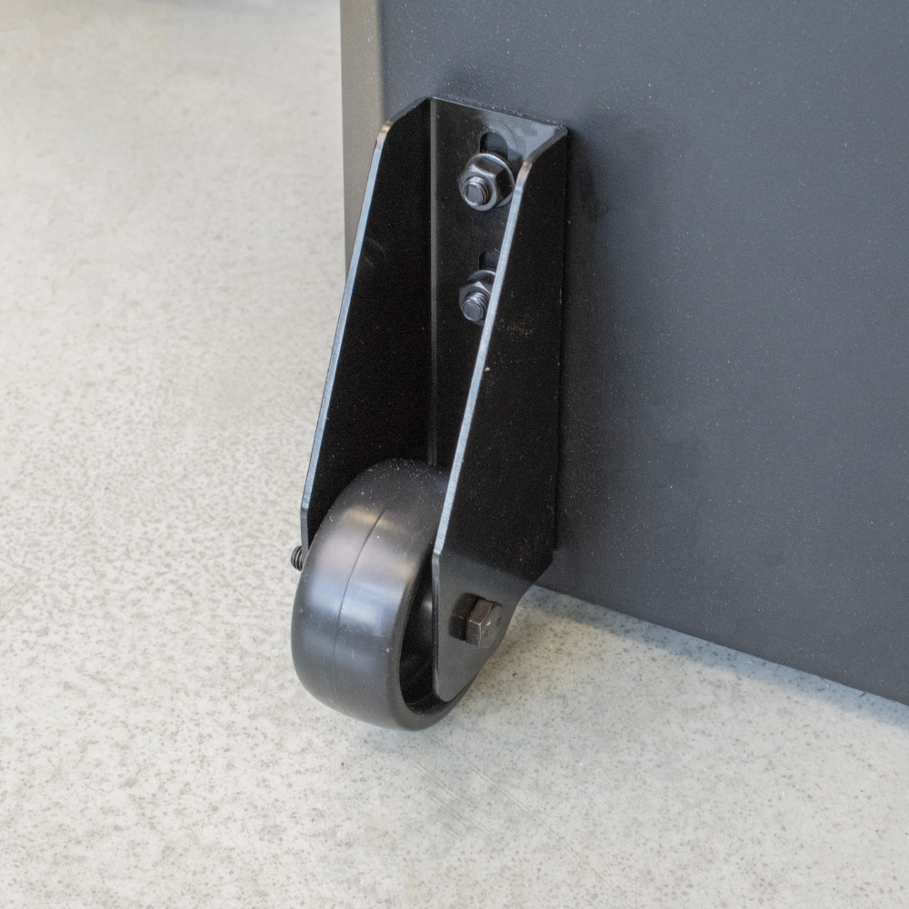Ein Satz aus zwei zusätzlichen Rädern, die für die Montage an der linken Seite der Laguna Fusion1-Säge ausgelegt sind, um die Säge leicht in der Werkstatt bewegen zu können.