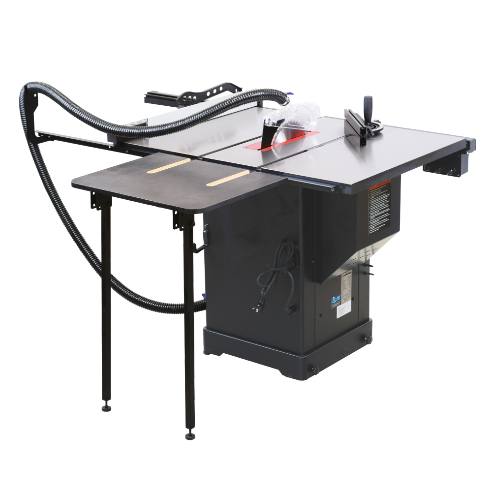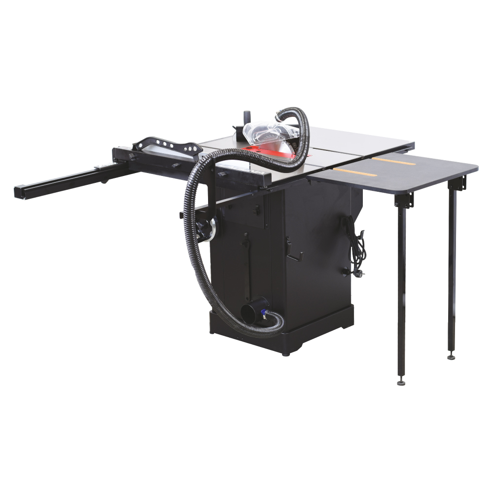 Der Antrieb wird mit einem starken 2,2 kW Motor gewährleistet. Robuste Motoraufhängung aus Gusseisen sorgt für Stabilität beim Arbeiten und garantiert so einen hervorragenden Schnitt. Die Einlage im Gusseisen-Tisch eignet sich für alle Schnittarten von 0° bis 45°. Sie lässt sich ganz einfach mit einem exzentrischen Schloss herausnehmen und ist mit einstellbaren Schrauben für genaue Ausrichtung mit der Tischkante versehen. Für die Säge kann ein DADO-Nutscheibensatz mit 15,87 mm (5/8 Zoll) Spannloch verwendet werden.