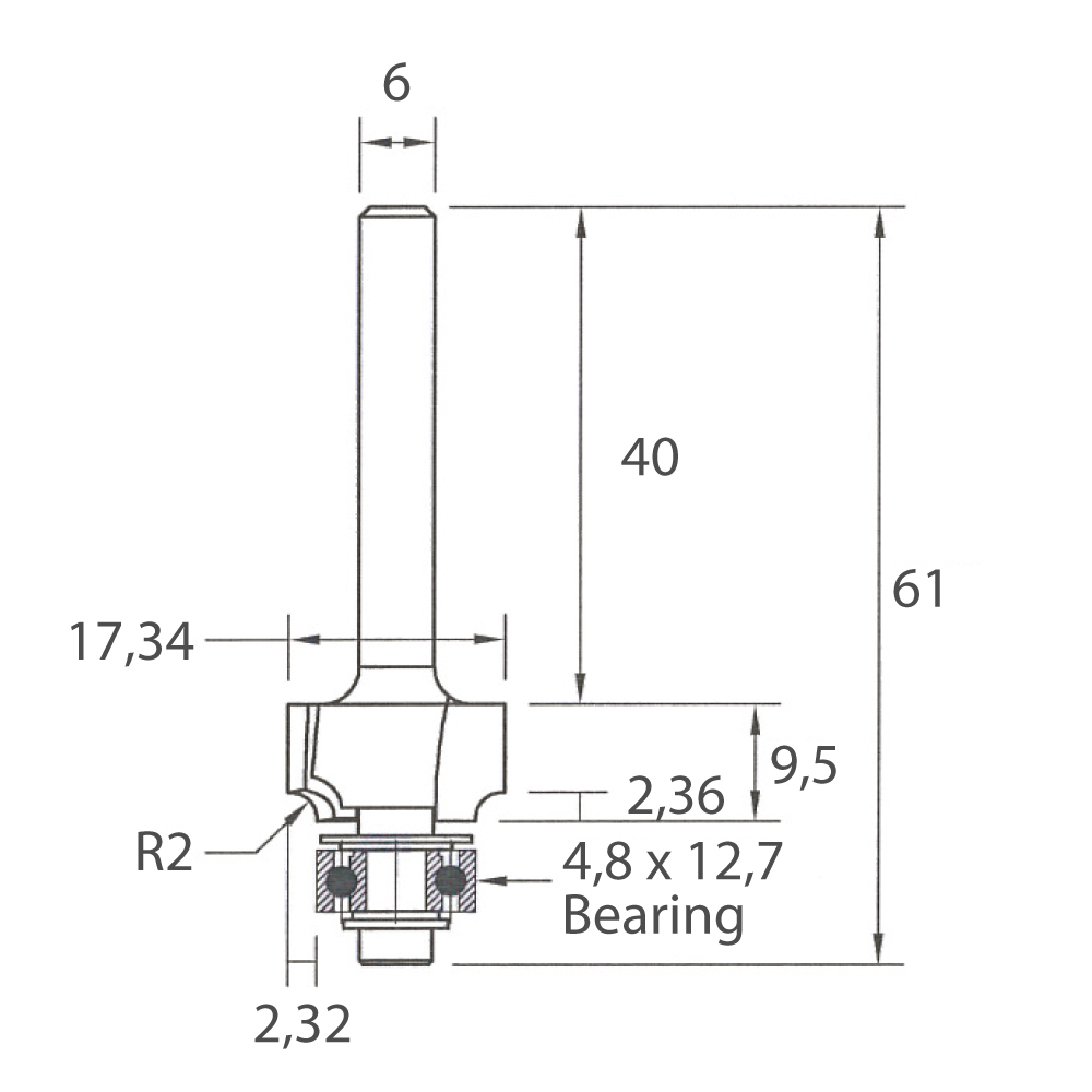 Produktname: IGM M138 Abrundfräser – R2 D17,34×9,5 L61 S=6 HW M138-02061