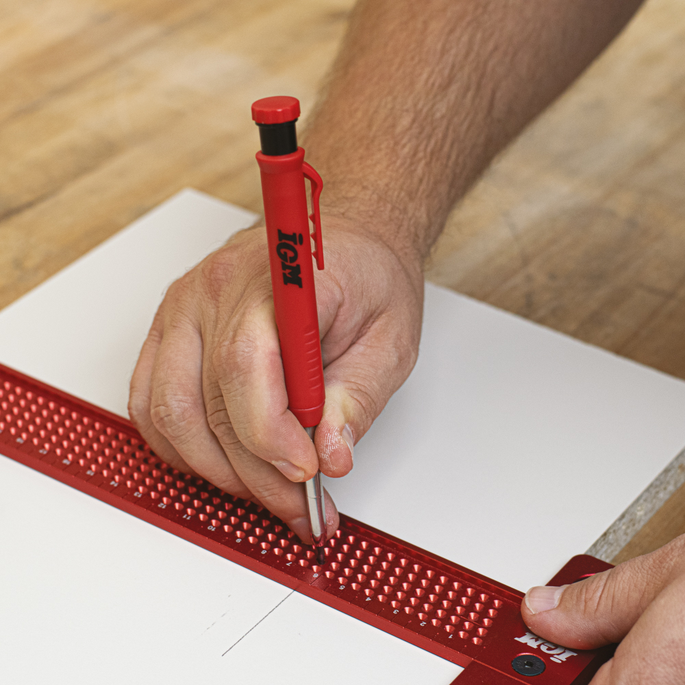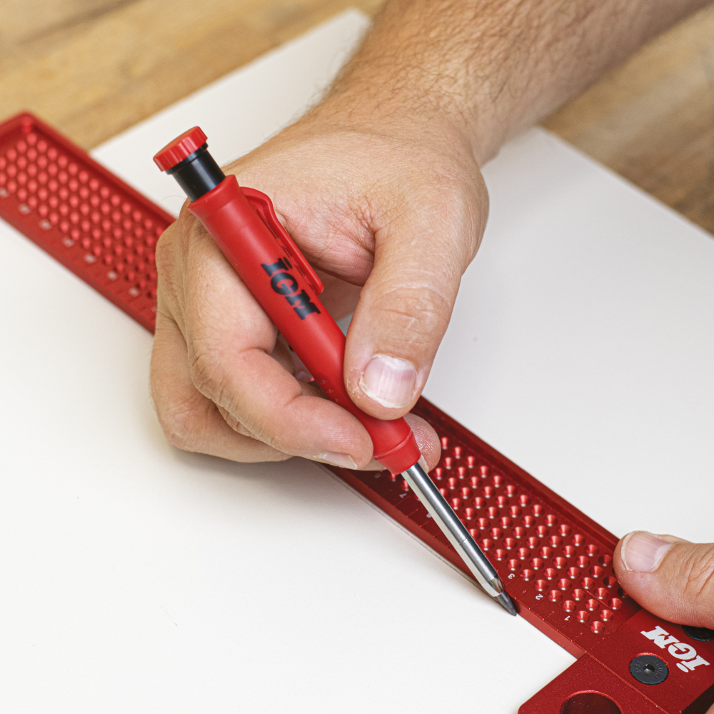 Der vielseitige Minenbleistift für Handwerker verfügt über spezielle auswechselbare Stifte mit einem Durchmesser von 2,8 mm, die Markierungen auf nahezu allen Oberflächen ermöglichen, egal ob trocken, nass, rau, glatt oder staubig.