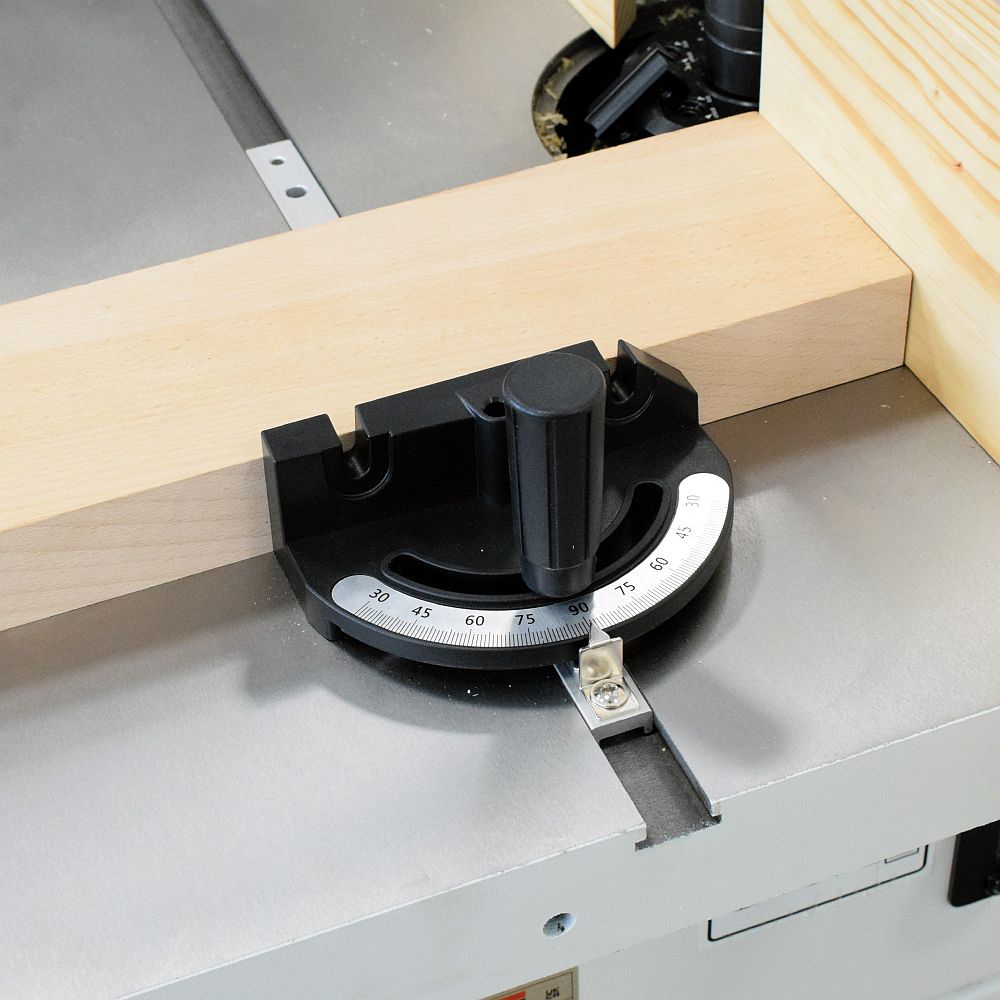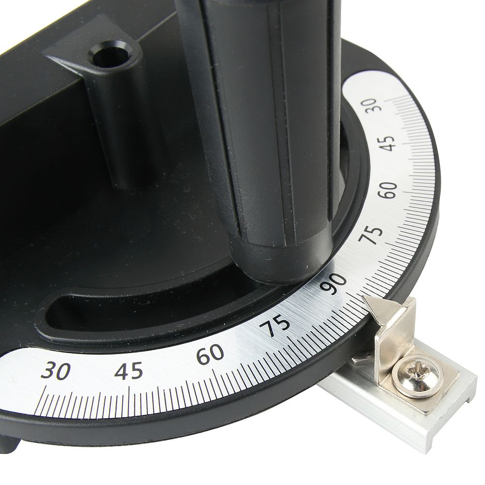 Dieses Gradmesser aus ABS-Kunststoff und Duraluminium ist für alle Maschinen und Frästische geeignet, die mit einer Standard 19 mm T-Nut ausgestattet sind. Die Klemm- und Auflagefläche des Lineals ist hochwertig gefräst für einen präzisen Einsatz. Das winkelverstellbare System ist mit einem 15° Anschlag im Bereich von +/- 60° ausgestattet. Die schnelle Winkeleinstellung wird durch eine federbelastete Schraube mit Kugel gewährleistet. Verschiebbare Schiene besteht aus Dural. Einmal auf Ihrer Maschine eingerichtet, bietet es dem Werkstück festen Halt und ermöglicht Ihnen das Schneiden präziser Gehrungsverbindungen. An das Gradmesser kann ein verschiebbares Aluminiumlineal mit T-Nut oder eine von Ihnen gefertigte Auflage aus Holz oder MDF angeschlossen werden.