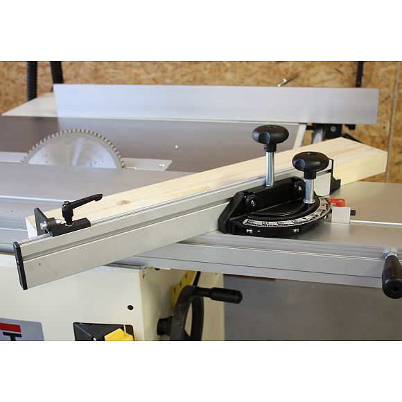 Dieser Gehrungsanschlag ist ein einzigartiges Werkzeug für schnelle und präzise Schnitte auf Gehrungssägen wie der JET JTS-600. Sie können den Winkelmechanismus auf Winkel zwischen +60° und 60° einstellen. Der Gehrungsanschlag ermöglicht präzise Winkel- und Gehrungsschnitte. Mit der T-Nut wird der Gehrungsanschlag einfach auf dem Aluminium-Schiebetisch der Säge befestigt. Endanschläge in den Positionen 45° und 90° sorgen für absolute Genauigkeit und wiederholbare Einstellung. Der Aluminium-Stützanschlag ist mit einem klappbaren Längenanschlag ausgestattet und hat eine Länge von 550 mm. Der Gehrungsanschlag garantiert präzise Ergebnisse beim Schneiden von Winkeln auf der JET Tischkreissäge.