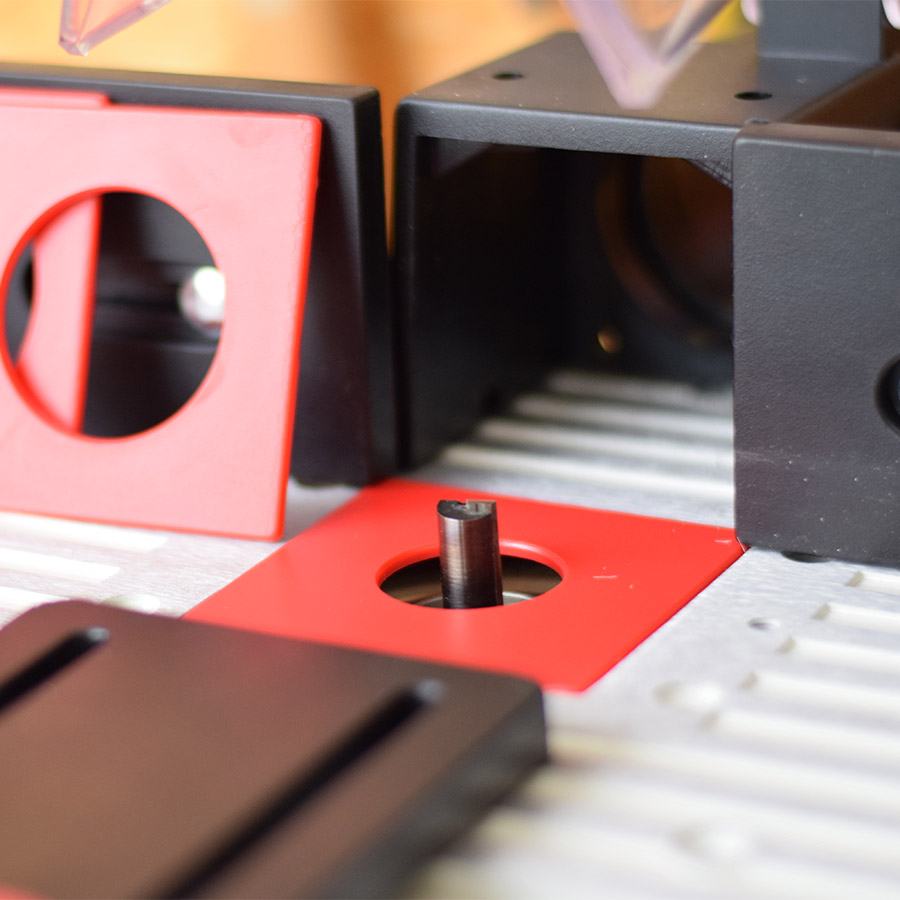 Kleiner Frästisch für präzises Fräsen mit Schaftfräsern größeren Durchmessers. Ausgestattet mit einem Sicherheitsschalter und der Möglichkeit, eine Oberfräse mit einer Leistung von bis zu 1600 W anzuschließen.