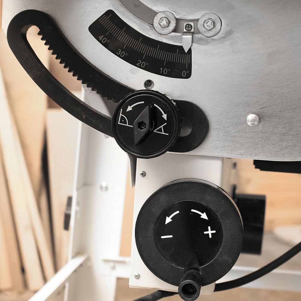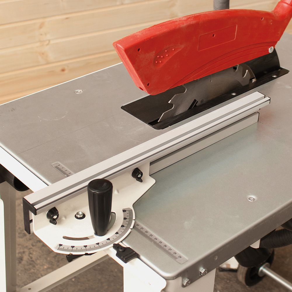 Säge mit verzinktem Stahlarbeitstisch, perfekt für Baustellen und kleine Werkstätten als Universalkreissäge. Zu den weiteren Vorteilen dieser Säge gehören der Induktionsmotor mit Bremse, hintere Tischverlängerung und Absaugung oberhalb und unterhalb des Sägeblattes. Die Säge wird serienmäßig mit einem hinteren Verlängerungstisch, einem 315mm HW-Sägeblatt, das bis zu 45° geschwenkt werden kann, einem Parallelanschlag für Längsschnitte, einem Absaugstutzen, Bedienwerkzeugen und einem Schiebestock für sicheres Arbeiten geliefert.