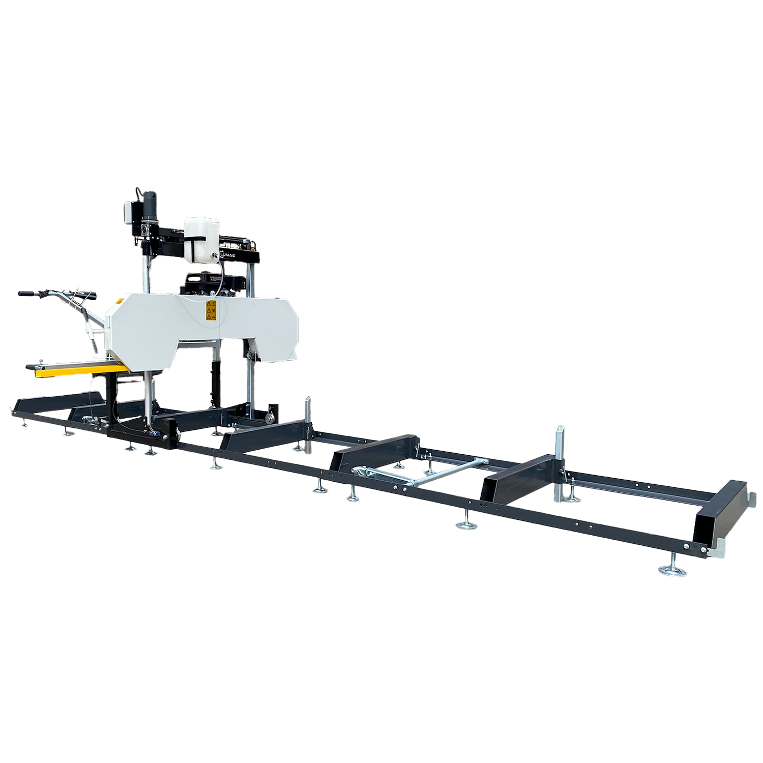 Die solide LUMAG Blockbandsäge ist mit einem kraftvollen Benzinmotor ausgestattet. Die Maschine ist durch den ruhigen Lauf der Antriebsräder ideal geeignet für präzises Sägen von weichen, harten und trockenen Hölzern. Eine robuste und schwingungsfreie Stahlkonstruktion sorgt für eine gute Schnittgenauigkeit, selbst bei großen und schweren Werkstücken. Die BSW 76GLPRO wird mit einer 5 m Rollbahn geliefert und ist mit Rollbahnverlängerungen beliebig erweiterbar. Die motorische Höheneinstellung und die Kühlmitteleinrichtung mit 10 Liter Behälter und Dosierhahn machen das Arbeiten noch angenehmer. Jetzt ist die Zeit gekommen, um Ihre Holzprojekte auf die nächste Stufe zu heben!