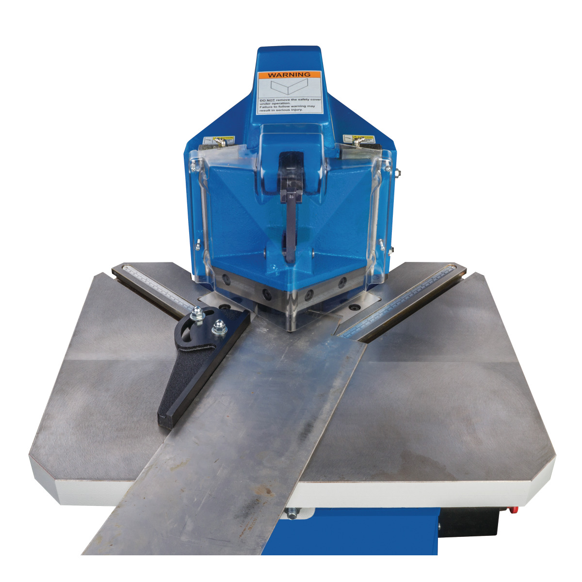 - Solider Tisch mit versenkten Skalen und T-Nuten für genaue Justierung der schwenkbaren Anschläge