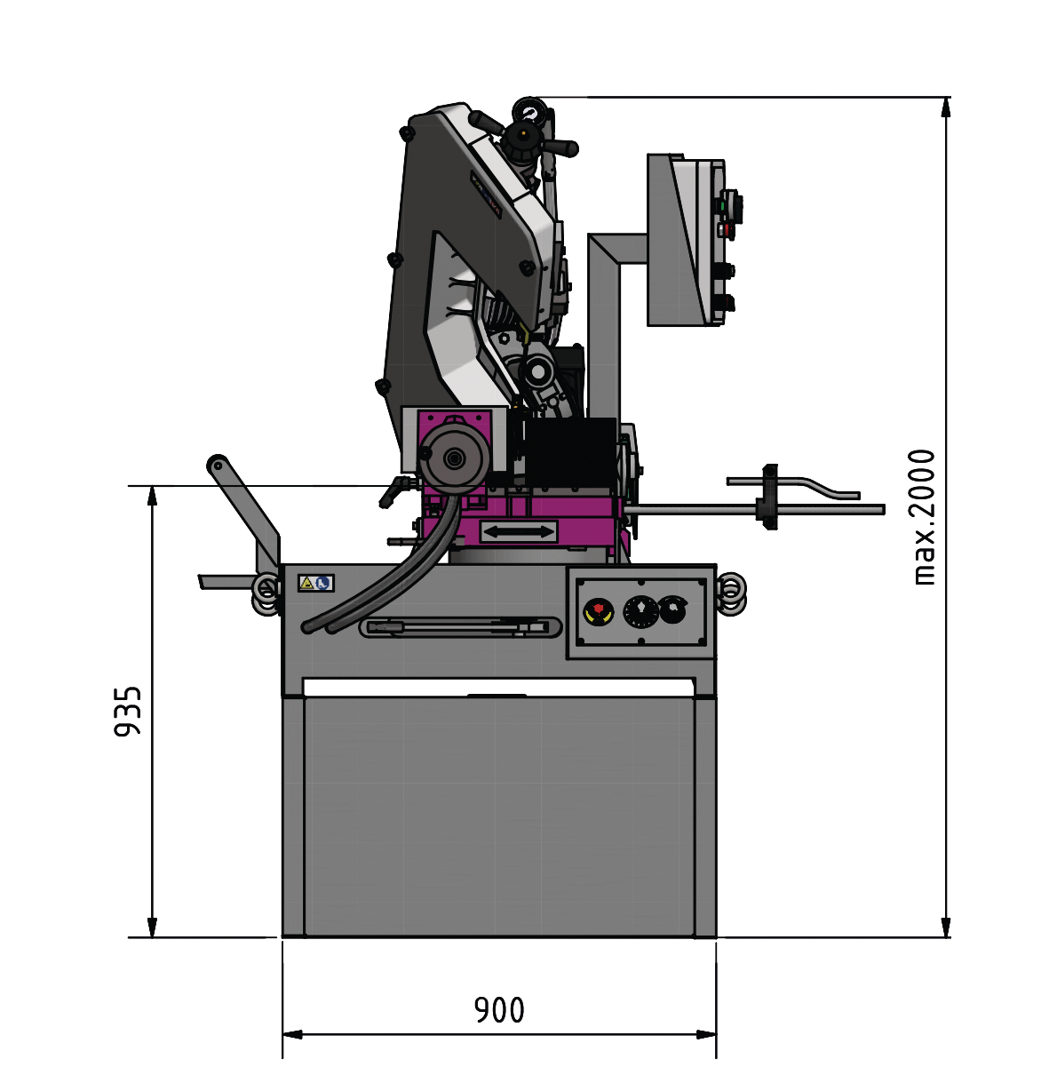 - Stufenlos einstellbare Sägeband-Geschwindigkeit von 0-80 m/min.
