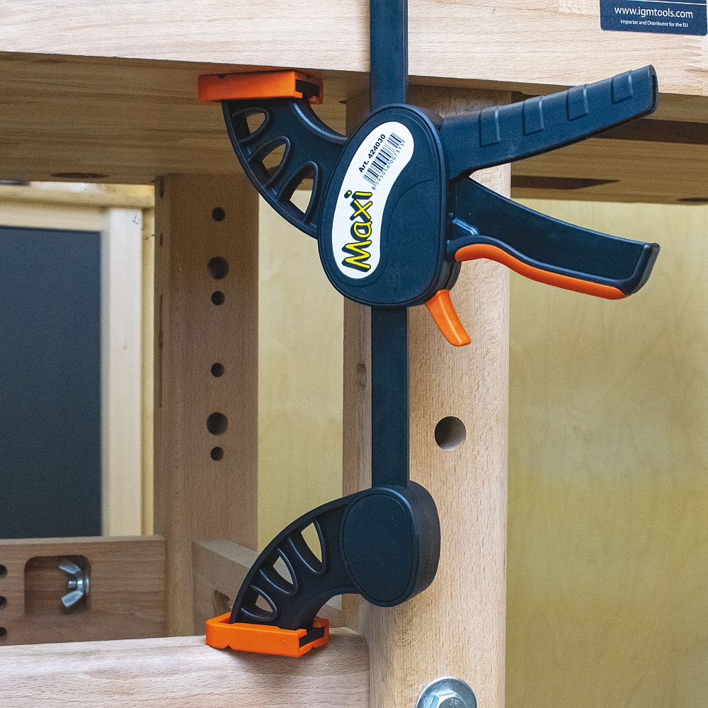 Robuster Schnellspannzwinge mit Spannkraft bis 150 kg, ohne Werkzeugeinsatz. Führungsschiene 6 x 20 mm ist aus gehärtetem Stahl. Die Schnellspannzwinge ist mit starken Kunststoffbacken mit weichen Enden und einem gummierten Griff ausgestattet. Erhältlich in mehreren Längen.